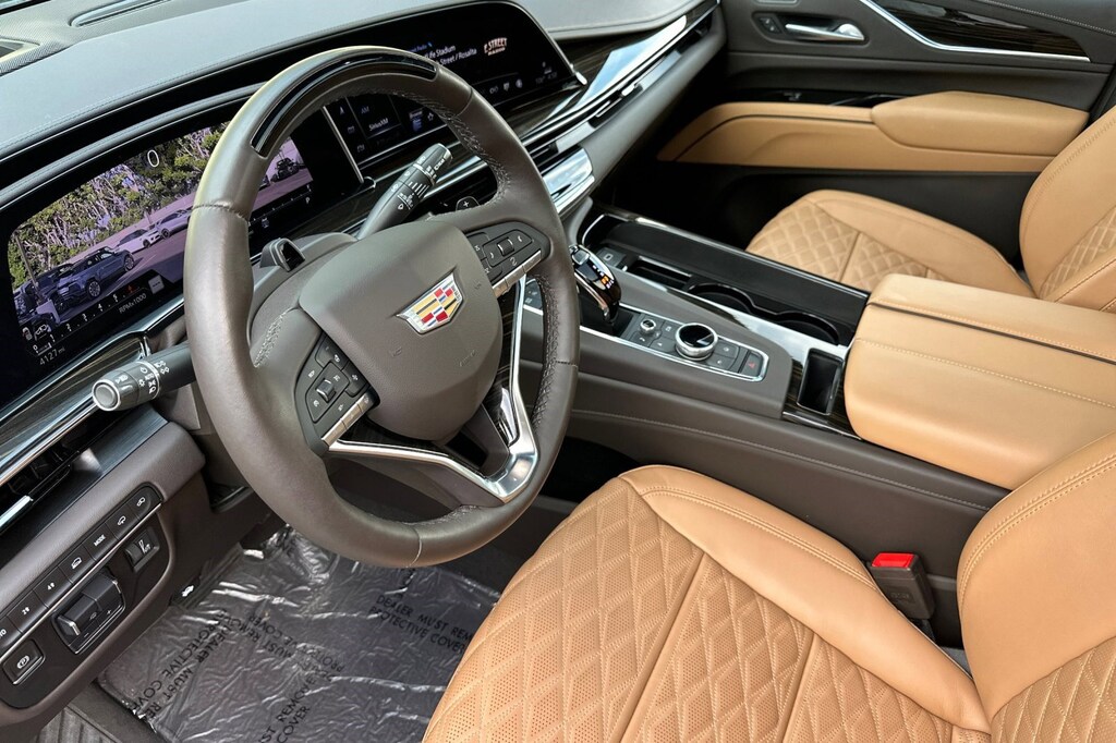 SEATS, SECOND ROW BUCKET, POWER RELEASE (STD), SEATS, FRONT BUCKET (Includes 12-way driver and front passenger adjustments.) (STD), REAR AXLE, 3.23 RATIO, OLED INFOTAINMENT EXPERIENCE WITH NAVIGATION AM/FM/SiriusXM with 360L with 16.9" diagonal color information display (displays and controls navigation, music and all features and functions of the vehicle), personalized profiles for each driver's settings, Natural Voice Recognition, Phone Integration for Wireless Apple CarPlay/Wireless Android Auto capability for compatible phone, Connected Apps and Teen Driver (STD), LICENSE PLATE BRACKET, FRONT, GVWR, 7600 LBS. (3447 KG) (STD), ENGINE, 6.2L V8 WITH DYNAMIC FUEL MANAGEMENT Direct Injection and Variable Valve Timing, includes aluminum block construction (420 hp [313.2 kW] @ 5600 rpm, 460 lb-ft of torque [623.7 Nm] @ 4100 rpm) (STD), ASSIST STEPS, POWER-RETRACTABLE WITH PERIMETER LIGHTING, Wireless Phone Charging (The system wirelessly charges one compatible mobile device. Some phones have built-in wireless charging technology and others require a special adaptor/back cover. To check for phone or other device compatibility, see my.cadillac.com/learnAbout/wireless-charging or consult your carrier.), Wireless Apple CarPlay/Wireless Android Auto.